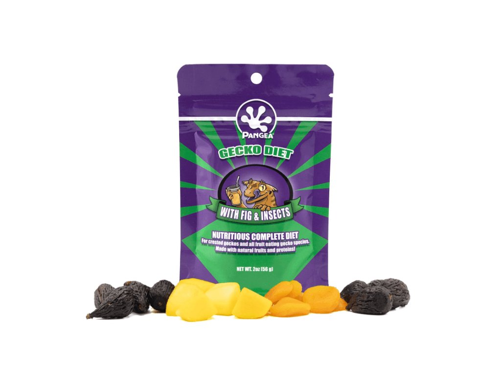 Tato receptura bez banánů má silnou vůni a chuť fíků. Použitím jiných druhů ovoce bylo možné začlenit fík do krmiva při zachování velmi nízkých hladin kyseliny šťavelové. Jako hlavní zdroj bílkovin jsou použiti cvrčci a larvy bráněnky, tím bylo dosaženo vyššího obsahu mastných omega kyselin. Pangea Gecko Diet Fig & Insects je o něco řidší než jiné receptury kvůli absenci hustého banánového prášku.
