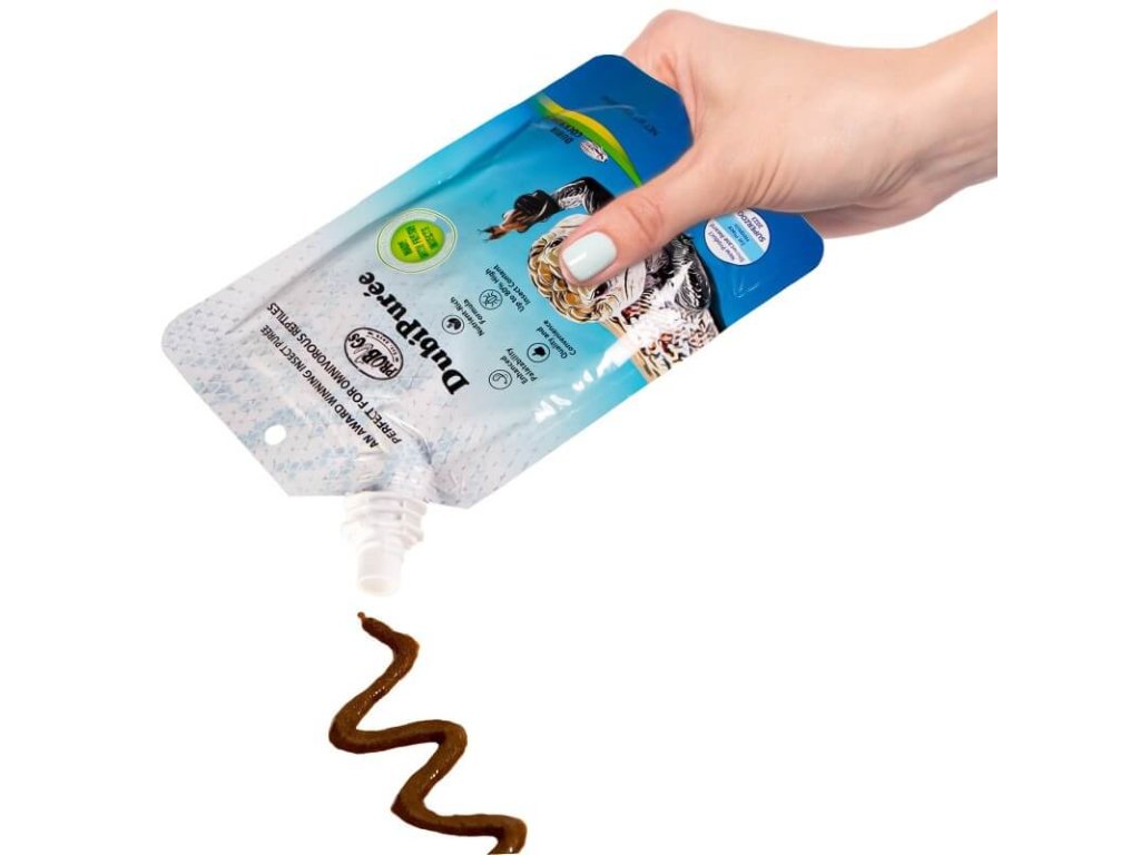 Krmný návod: Před použitím sáček jemně zmáčkněte, aby se obsah rovnoměrně rozložil. Otevřete hrdlo sáčku a opatrně vytlačte požadované množství DubiPurée. Ke krmení použijte kleště na krmení nebo pinzetu, abyste uchopili DubiPurée před plazy, abyste upoutali jejich pozornost.Pozorujte reakce plazů a podle potřeby upravte techniku krmení, abyste je povzbudili ke konzumaci DubiPurée a užívání si jeho nutričních výhod.