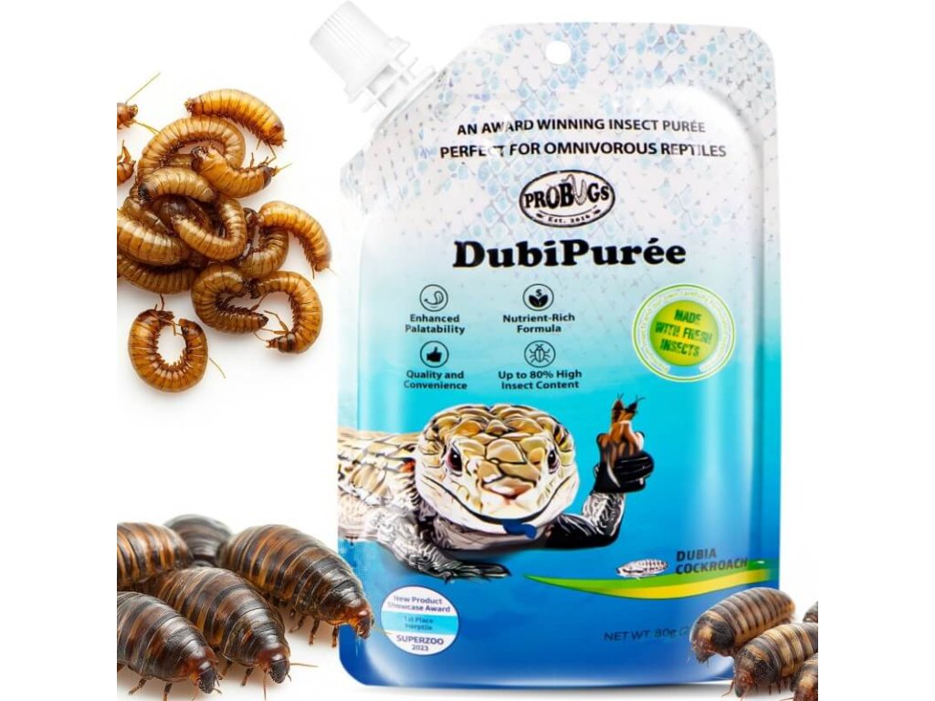 Gelové krmivo v kapsičce vyrobené ze švába argentinského a moučných červů, které je navíc obohaceno o důležité vitamíny a minerály. Ačkoli díky svému složení představuje ProBugs DubiPuree plnohodnotné krmivo, doporučujeme ho střídat s živým hmyzem a dalšími složkami pro vytvoření co nejpestřejšího jídelníčku. Právě pestrost je základním kamenem pro zdraví vašich chovanců.