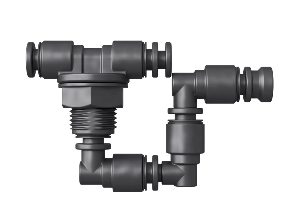 Kompletní sada se skládá z kompaktního čerpadla s displejem, 2 trysek s T-konektorem a šroubením, hadičky o délce 5 m, nasávací koncovky s vodním senzorem, přívodního adaptéru, 2x ucpávky, 2x propojovací konektor a další drobné příslušenství. Hadičky je možné zkracovat pomocí ostrých nůžek nebo přiloženého řezáku.