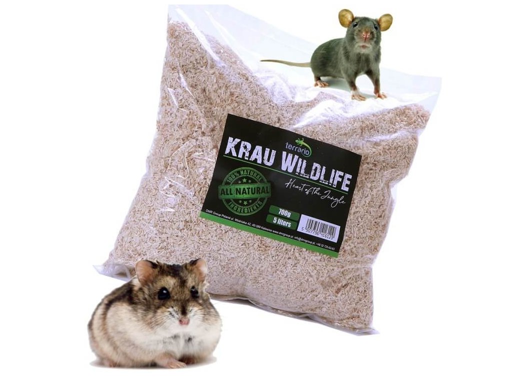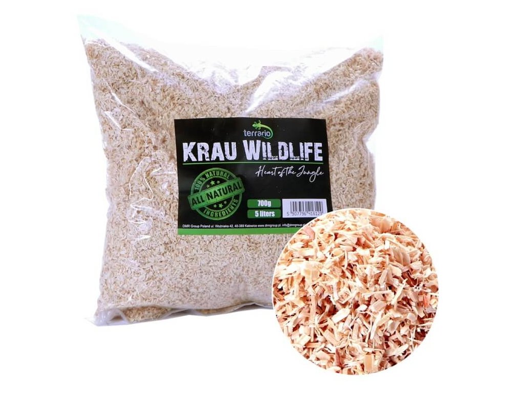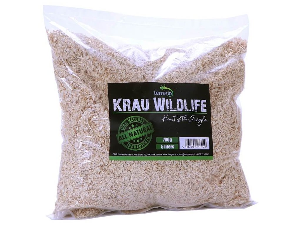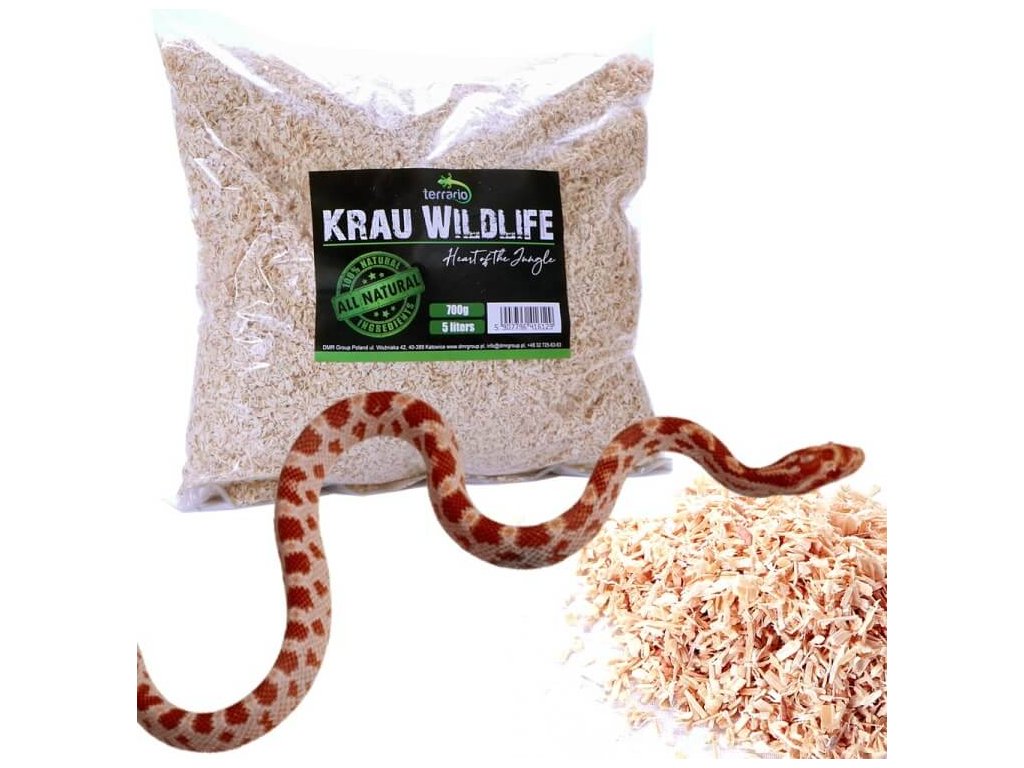 Terrario Krau Wildlife je 100% přírodní substrát z osikového dřeva. Vhodný pro korálovky, užovky, krajty královské, hroznýše a další druhy, kteří se rádi zahrabávají. Díky své struktuře dobře drží tvar a vyhovuje tak přirozené potřebě hadů hloubit tunely, úkryty a hnízda. Stejně tak je možné použití u suchozemských želv a hlodavců.