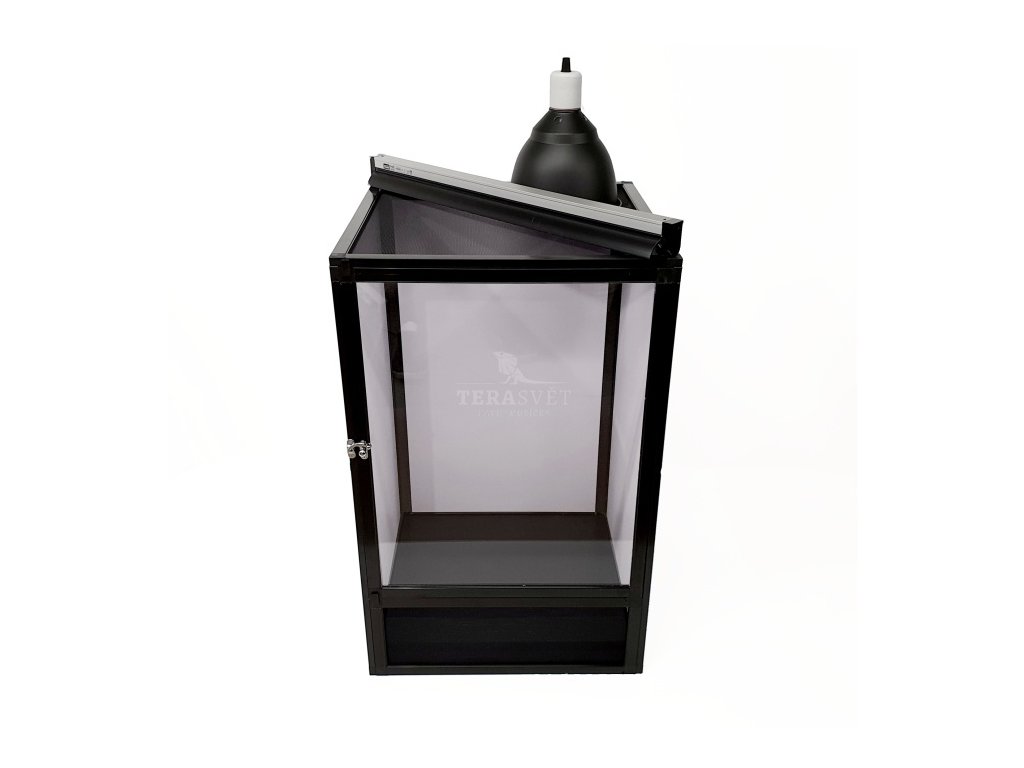 Vzhledem k síťovanému stropu doporučujeme umístění osvětlení nad terárium. Vhodná svítidla a reflektory se nachází níže v Souvisejících produktech.