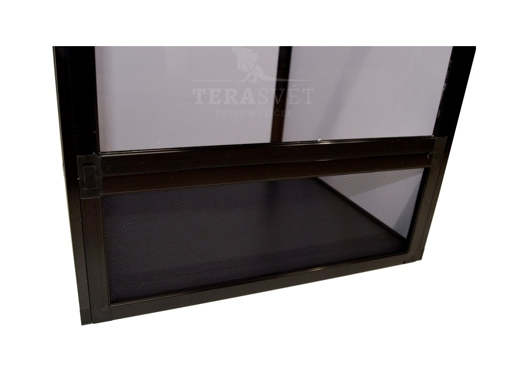 Tento typ terária má zadní stěnu a boční stěny z bílých PVC desek. Strop a spodní díl pod dvířky je vyplněn černým kovovým pletivem. Dvířka jsou z transparentního plexiskla. Rámová konstrukce je vyrobena z černého lehkého kovu. Dno je tvořeno plastovou deskou v bílé barvě, na které je volně ložená černá podložka umožňující snadnější čištění. Přední dvířka se pohybují na bočních pantech a lze je snadno "zamknout" jednoduchou západkou. K těmto teráriím je možné přikoupit plastovou vaničku určenou na dno terária. Vanička umožňuje snadnější údržbu díky možnosti vyndání a navíc do ní lze nasypat substrát.